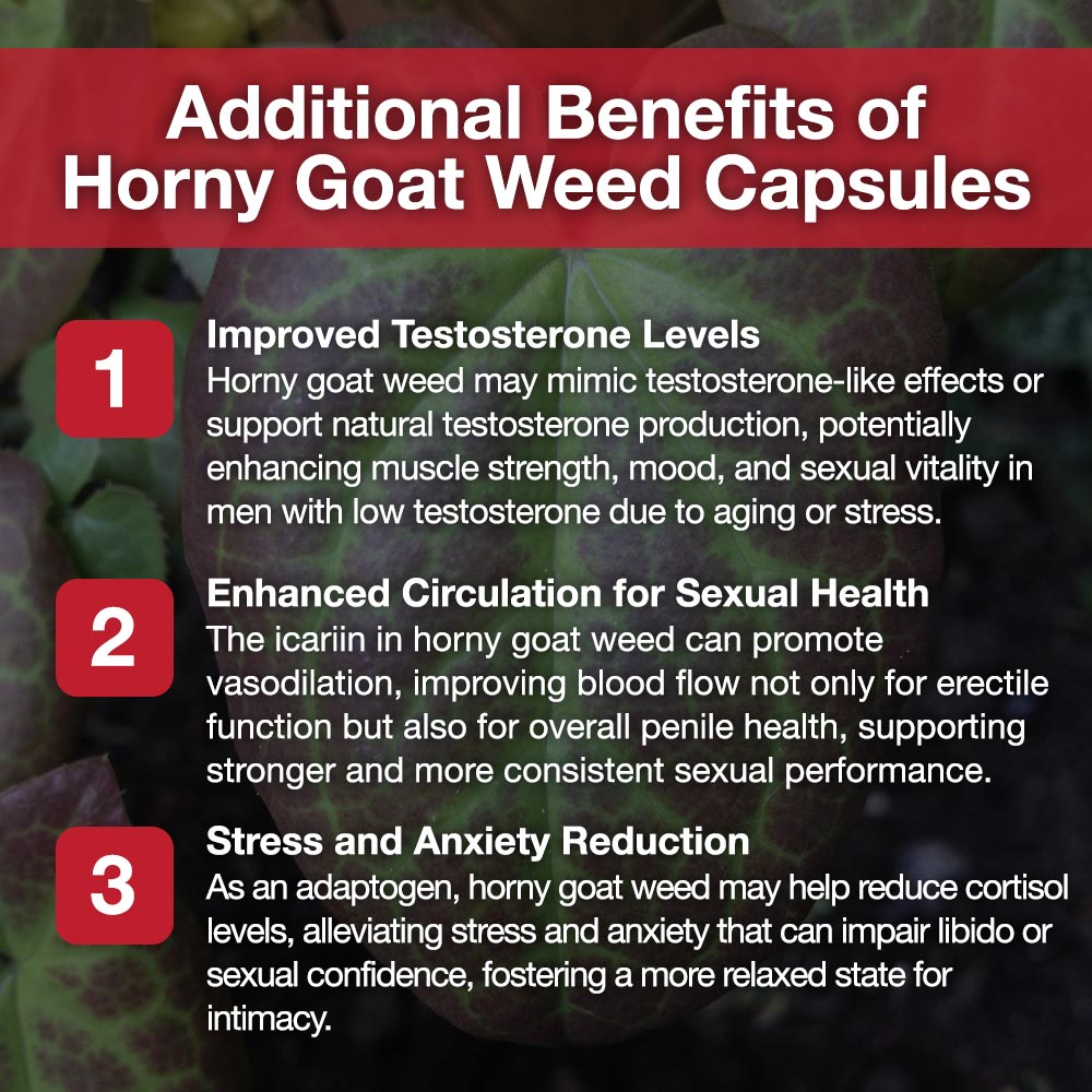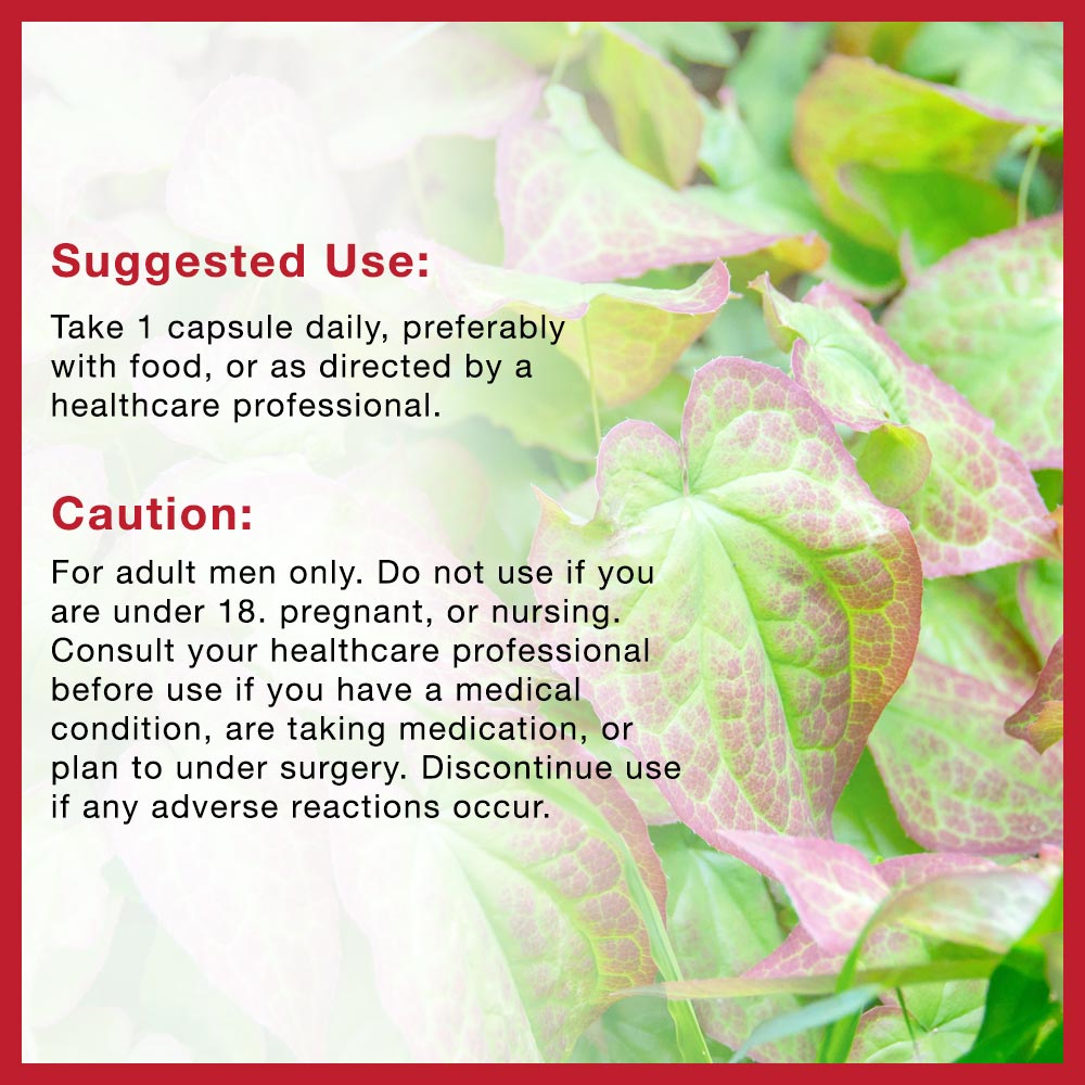 Male Vitality & Performance Support – Horny goat weed, maca, tongkat ali, and tribulus terrestris support healthy circulation, stamina, and male vitality.