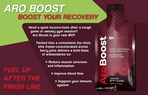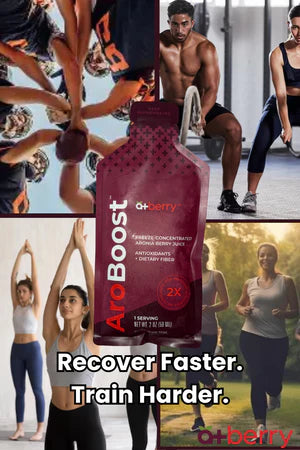 Fuel endurance and speed up recovery with AroBoost — a premium aronia berry concentrate shot designed to support active lifestyles and athletic performance.